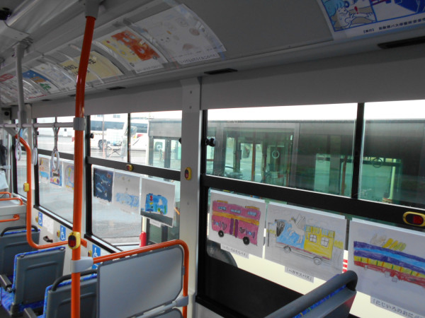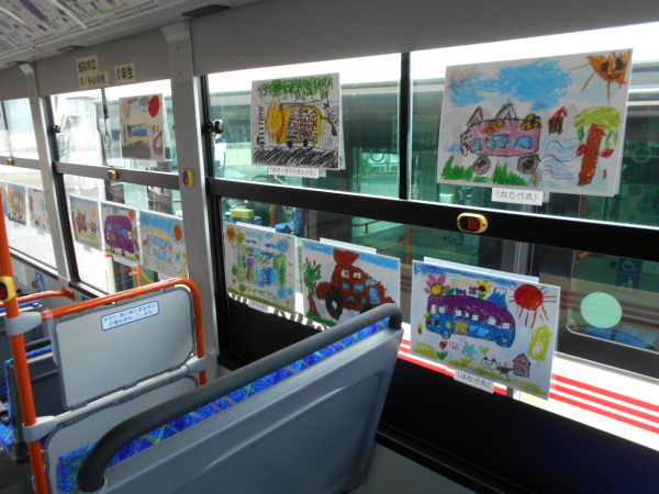 毎年、路線バス沿線の小学生が描いた絵を車内に展示して運行しています。